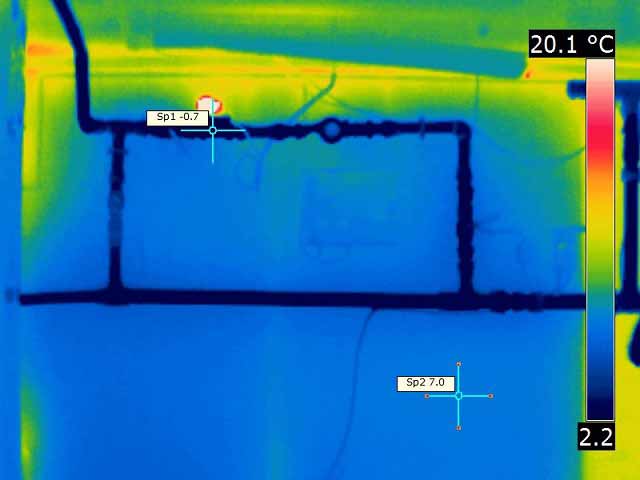 W przypadku rurociągów, wymienników ciepła lub chłodnic ich obraz termowizyjny przy odpowiedniej różnicy temperatur, może wskazywać intensywność przepływu czynnika i pozwala zidentyfikować ewentualne niedrożności i zanieczyszczenia powierzchni wewnętrznych (np. kamień kotłowy).