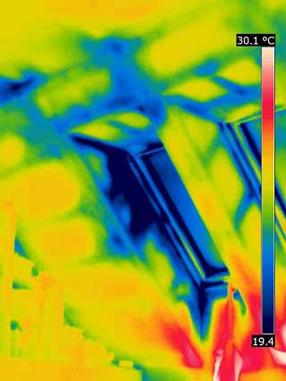 Sposobem na jednoczesne wyeliminowanie obydwu czynników zakłócających jest wykonanie zdjęć od strony wewnętrznej. Obraz wewnętrznej powierzchni dachu (najczęściej jest to sufit) bezpośrednio wskazuje miejsca najbardziej intensywnej wymiany ciepła (mostki cieplne).